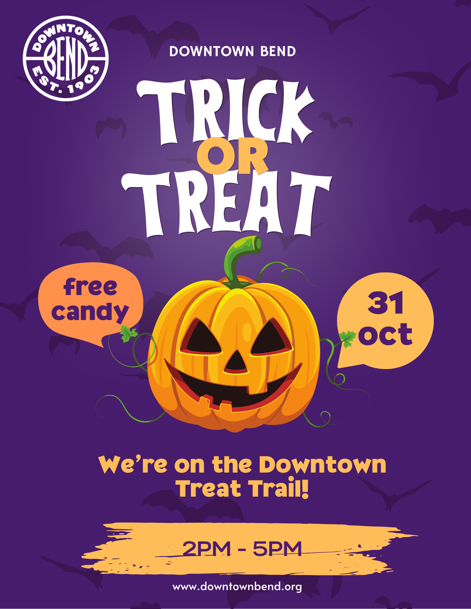 Follow the Downtown Bend Treat Trail this Halloween for a fun and festive afternoon of family trick-or-treating!